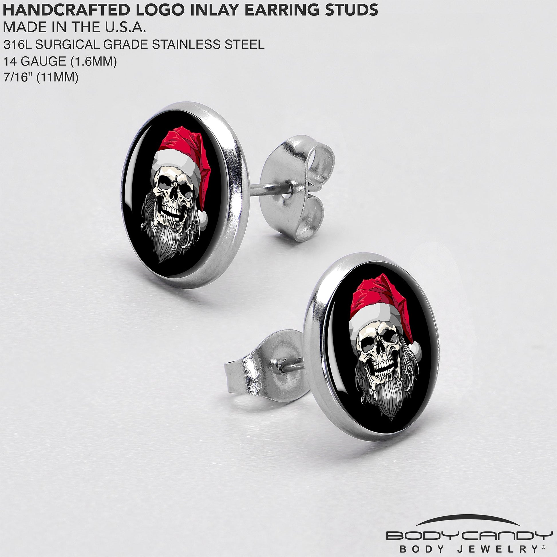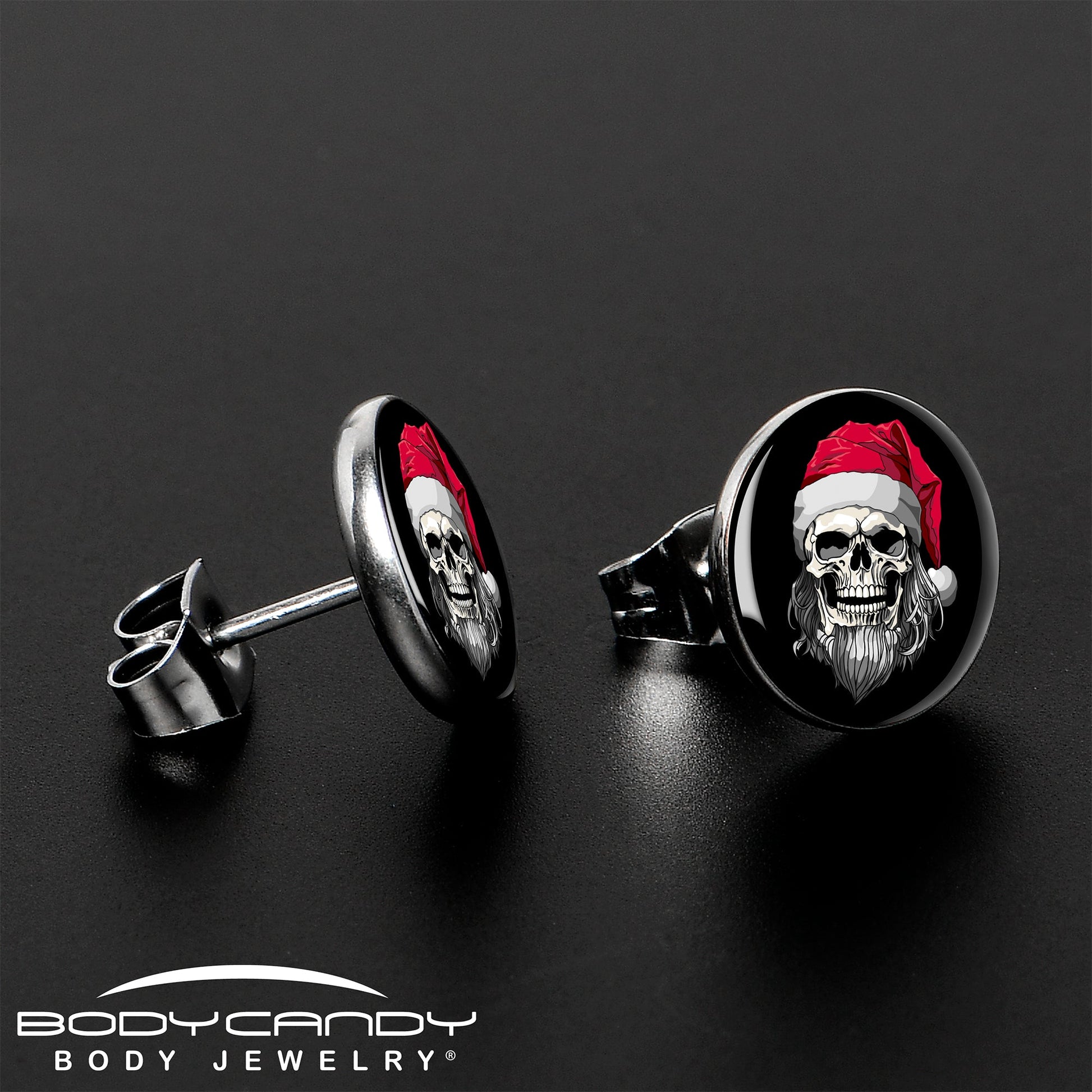 Hypoallergenic jewelry for sensitive skin.Holiday Skeleton Santa Claus Stud Earrings