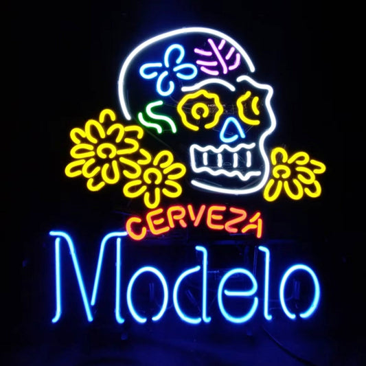 Cerveza Modelo Beer Skull Bone Neon Signs