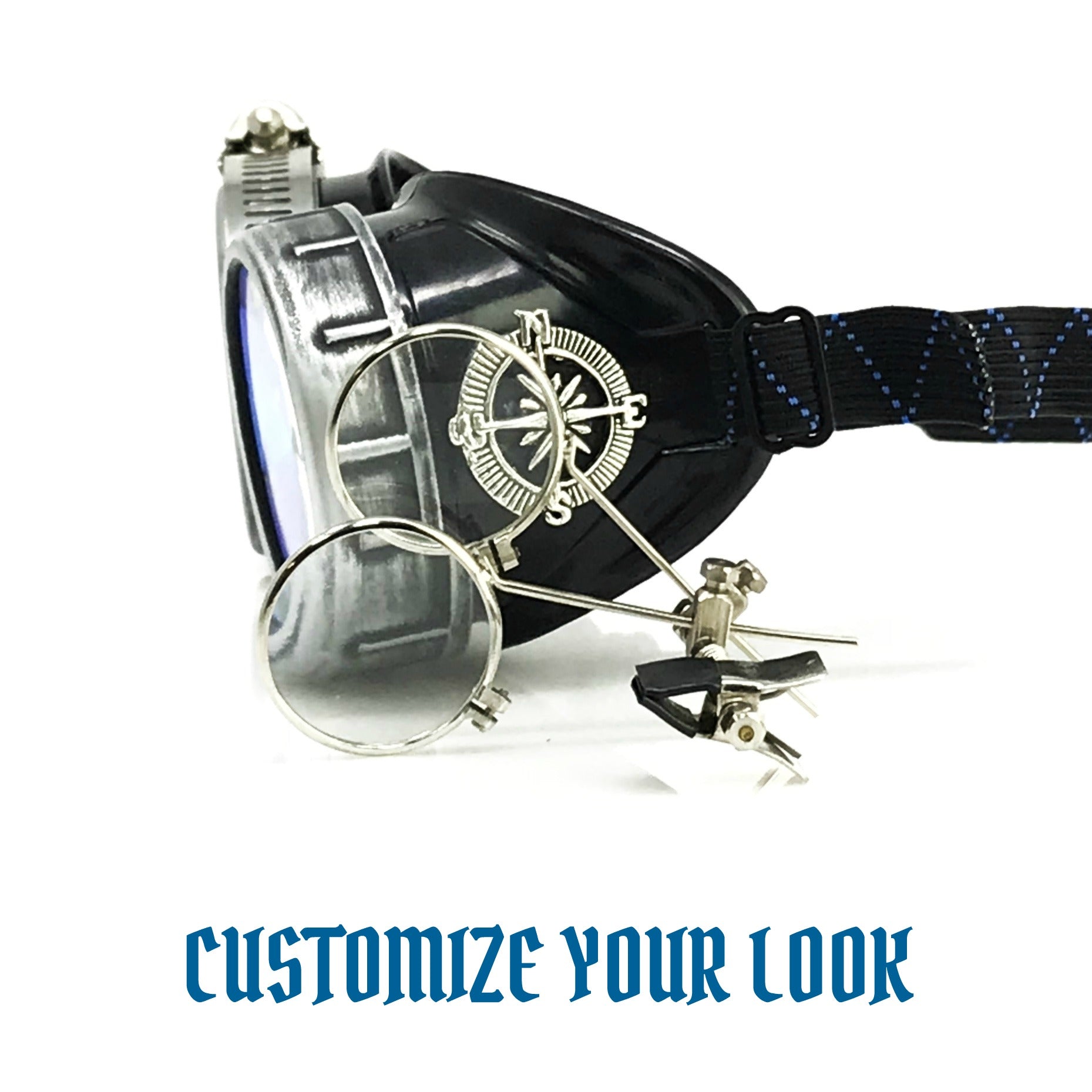 Cosplay goggles and removable clip-on magnifying loupes