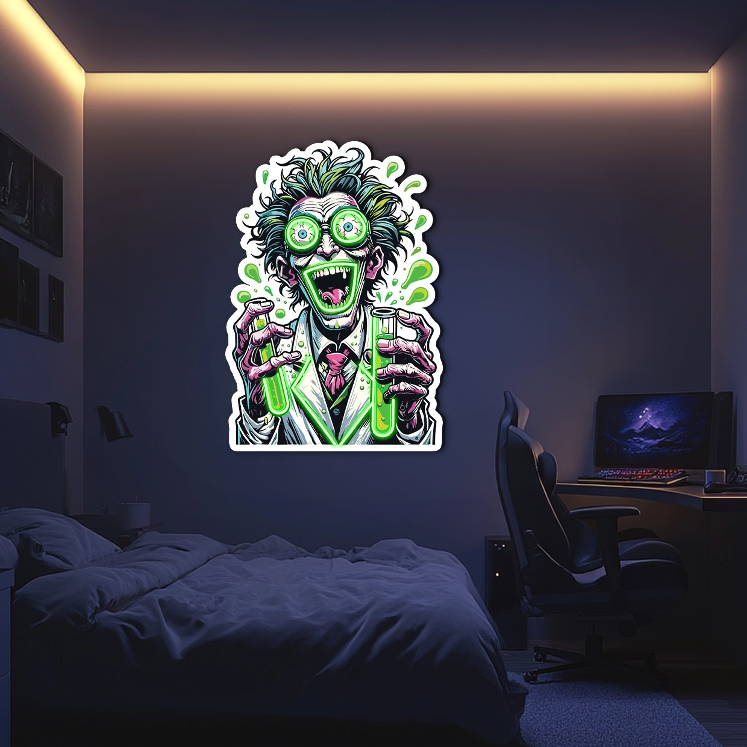UV Printed Crazy Professor Neon Sign, Neon Wall Art, Neon Light Sign, Custom Neon Sign, UV Print Neon Sign, Acrylic Neon Sign, Housewarming Gifts