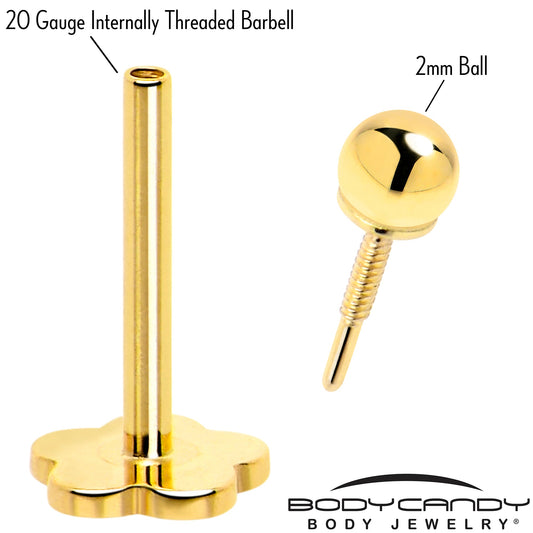 14k Yellow Gold Flat Back Earring 20G 2mm Ball Floral Reversible