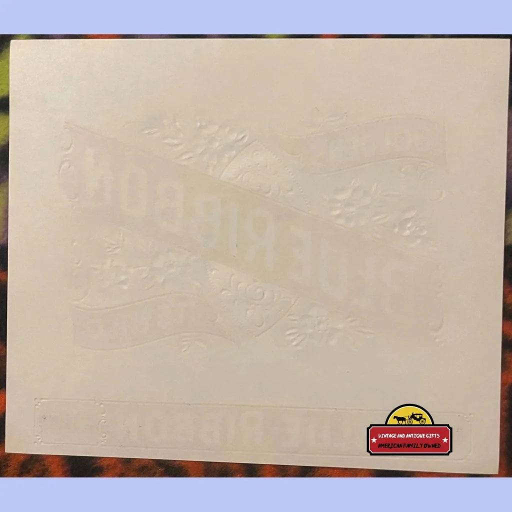 Step back in time with this exquisite antique vintage blue ribbon large embossed cigar label, a true gem from Golden's Cigar of Bonneauville, PA. This rare find is a must-have for discerning collectors seeking to elevate their assemblage of vintage tobacco memorabilia. Dating back to the early 1900s through the 1920s, this stunning label showcases a mesmerizing blue ribbon design that captivates the eye with its intricate details and stylistic finesse. The masterful 3-dimensional embossing work brings the label to life, creating a tactile experience that transports you to the golden age of cigar craftsmanship.