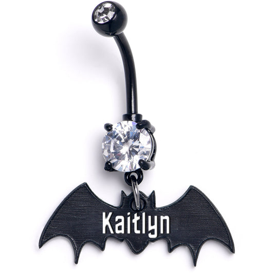 Custom Clear Gem Black Bat Personalized Dangle Belly Ring