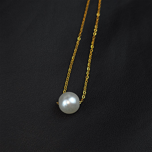 Stainless Steel Gold Tone PVD Chain Necklace Minimalist Pearl Pendant Necklace