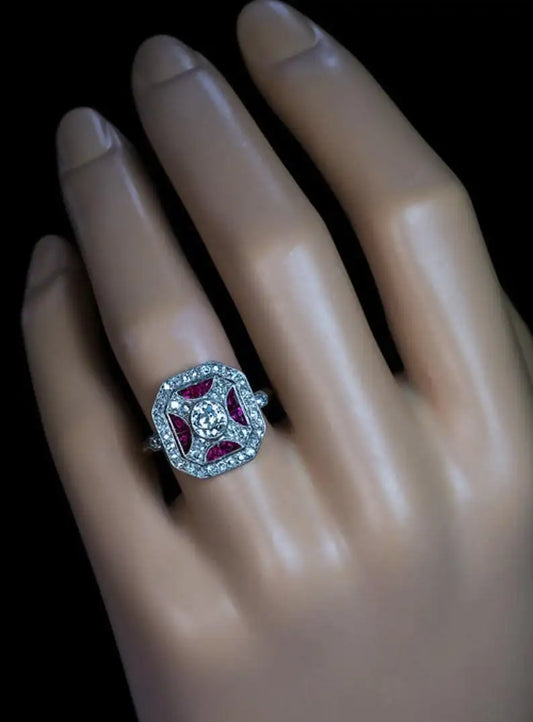 New Copper Inlaid Zircon Rose Red Rose Gold Two-tone Women's Ring