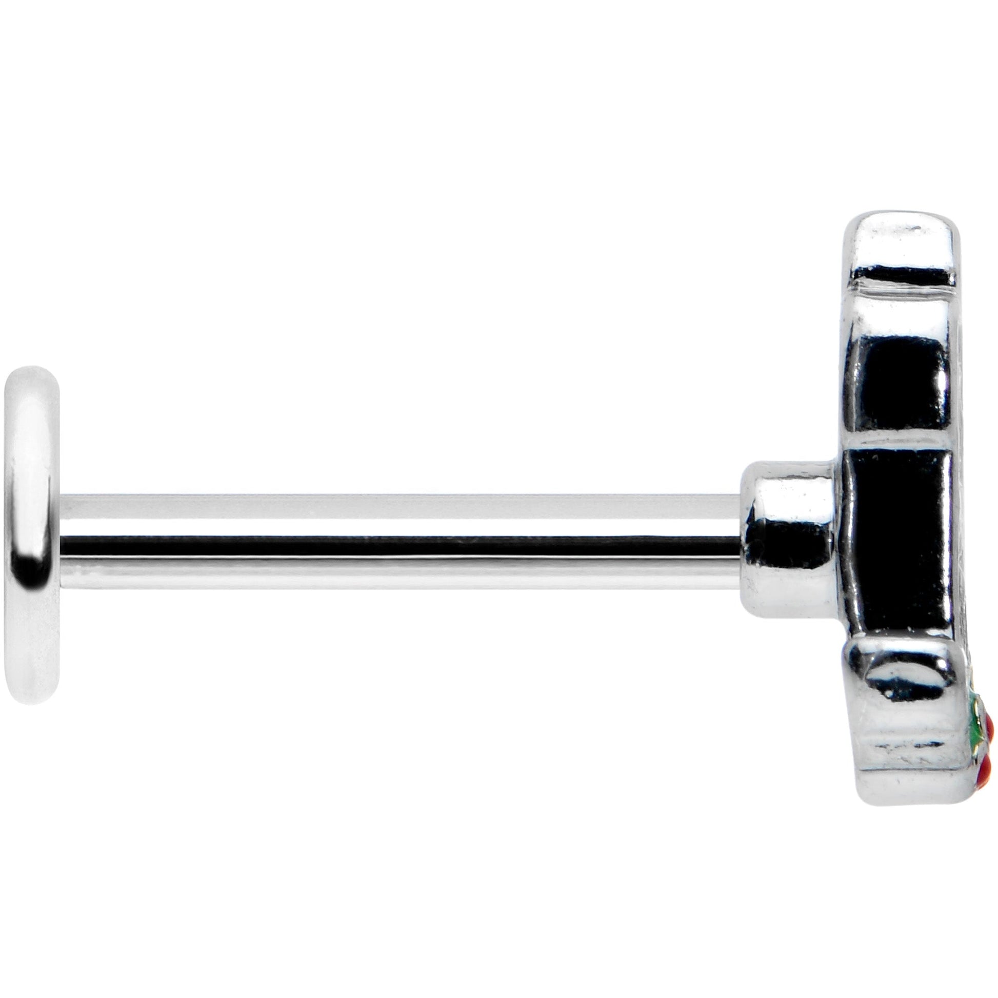 Keep the light in your piercings with this 16 gauge lip ring! It's made with an 8mm durable 316L surgical grade stainless steel straight post with a flat disc end. It features a candle charm, with white embellishment. The candle is further embellished with an inlaid sprig of holly at its base for a thoroughly festive feel and you can rock it in multiple piercings including lip, monroe, tragus, helix, and some conch piercings. You'll be feeling the season when you're rocking this fun and festive cartilage piercing jewelry.
