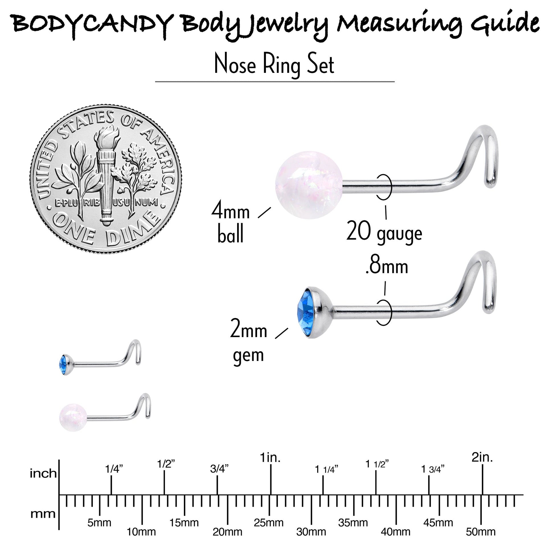 20 Gauge Nose Screw Gem Faux Opal Pack Pretty Nose Ring Set of 6