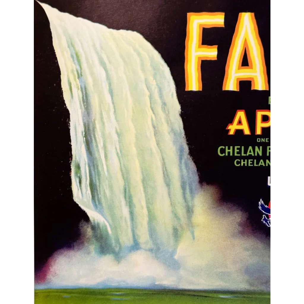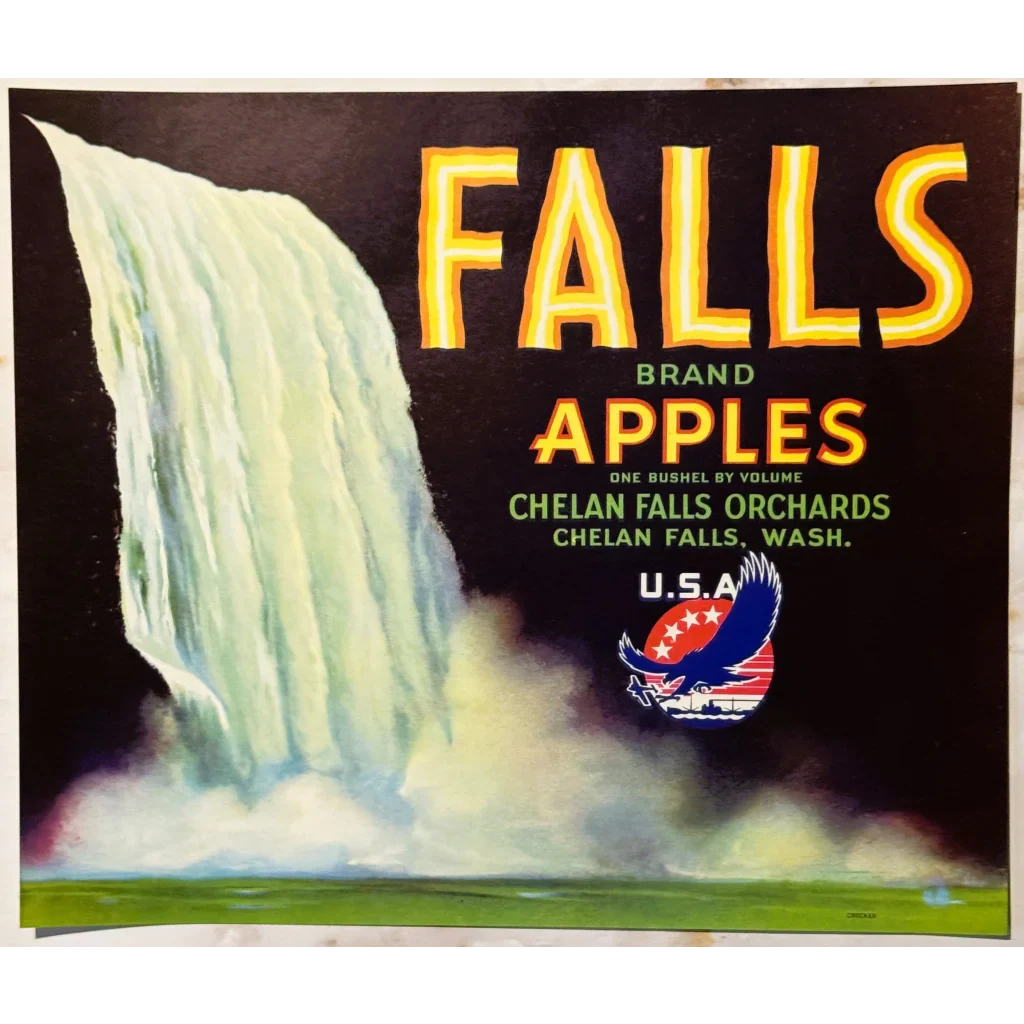 Vintage 1940s Falls Apples Crate Label from Chelan Falls Orchards