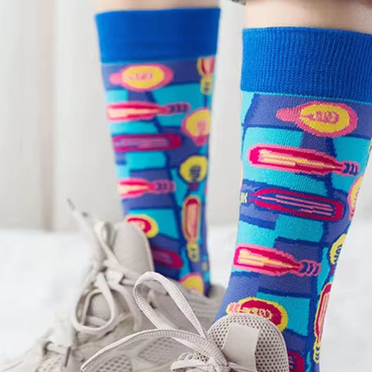 Bright Idea! Light Bulb Colorful Cotton Socks | Blue Women‘s Crew Socks