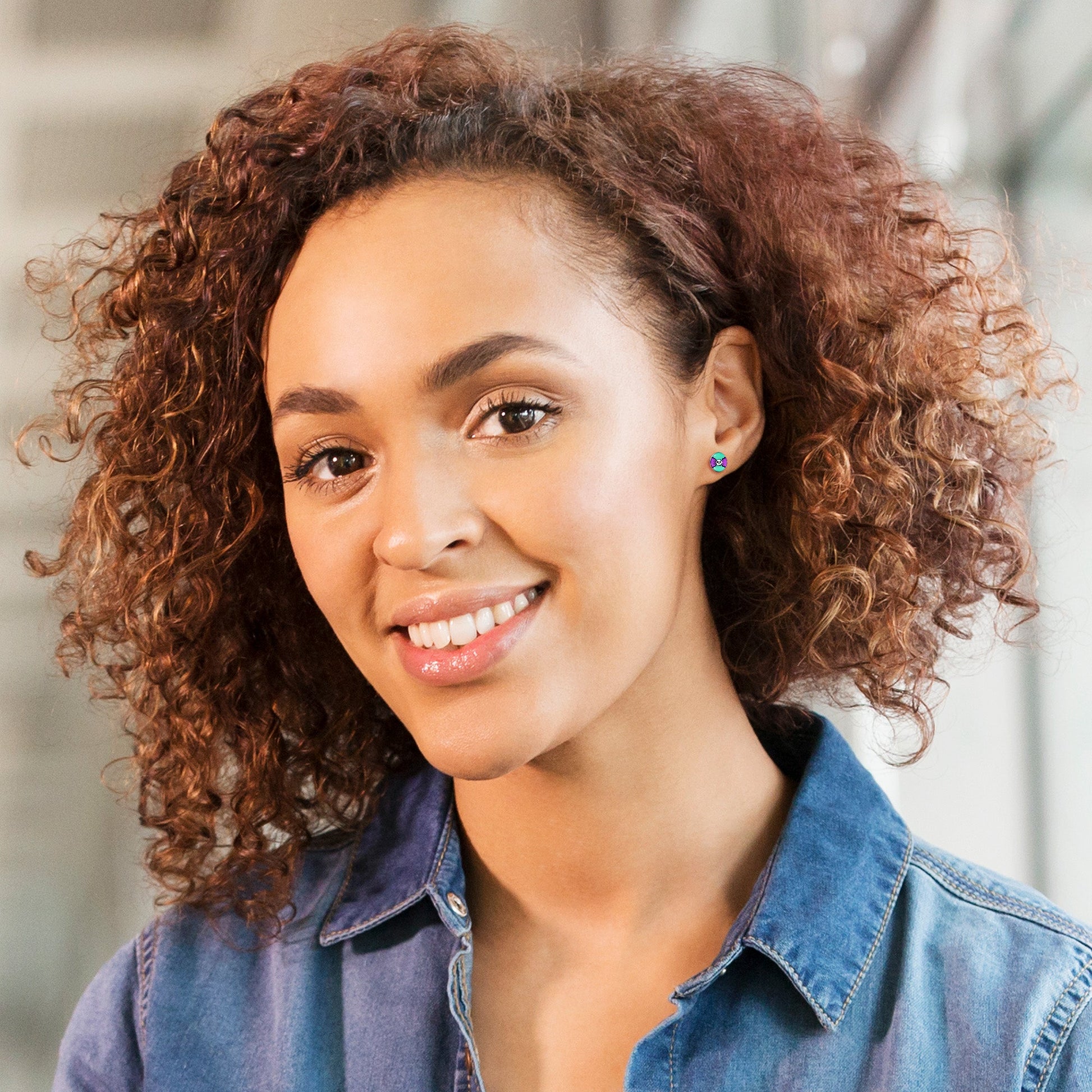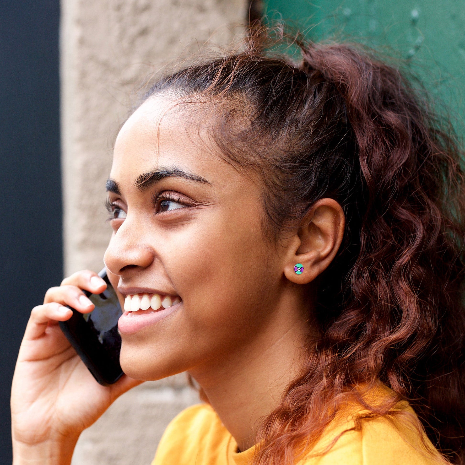 Hypoallergenic jewelry for sensitive skin.Retro Pixel Skull Stud Earrings
