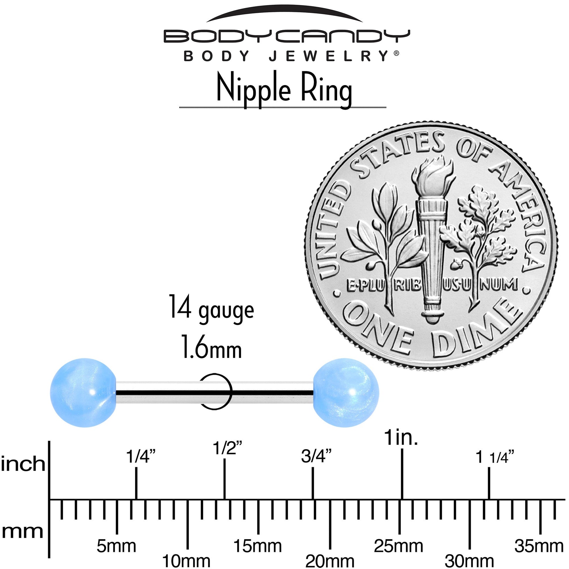 Brighten up your style when you are rocking this 14 gauge nipple jewelry. It is made with 14mm durable 316L surgical grade stainless steel straight barbell with 5mm ball ends. It features bright color acrylic ball ends for gorgeous burst of color that is sure to get noticed. Let a new day dawn for your look when you're rocking these bright nipple piercing rings. Sold as a set of two.
