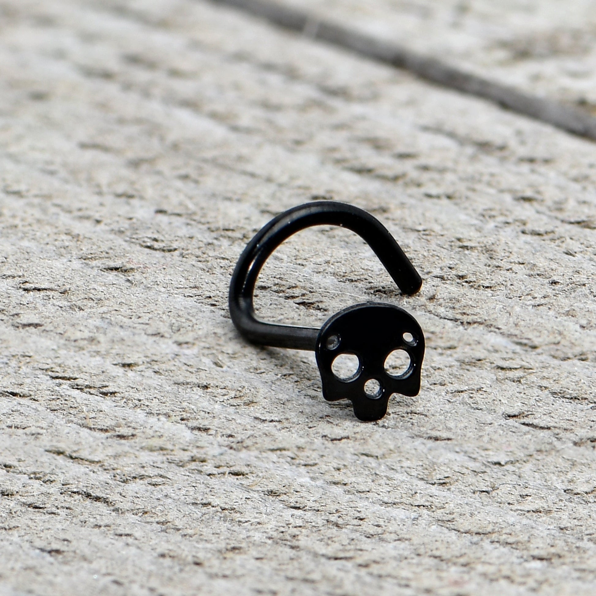 This nose stud will have you killing the style game. Made from anodized titanium over steel, this nostril screw is a must have. skull nose ring body jewelry. 20 gauge nose jewelry.