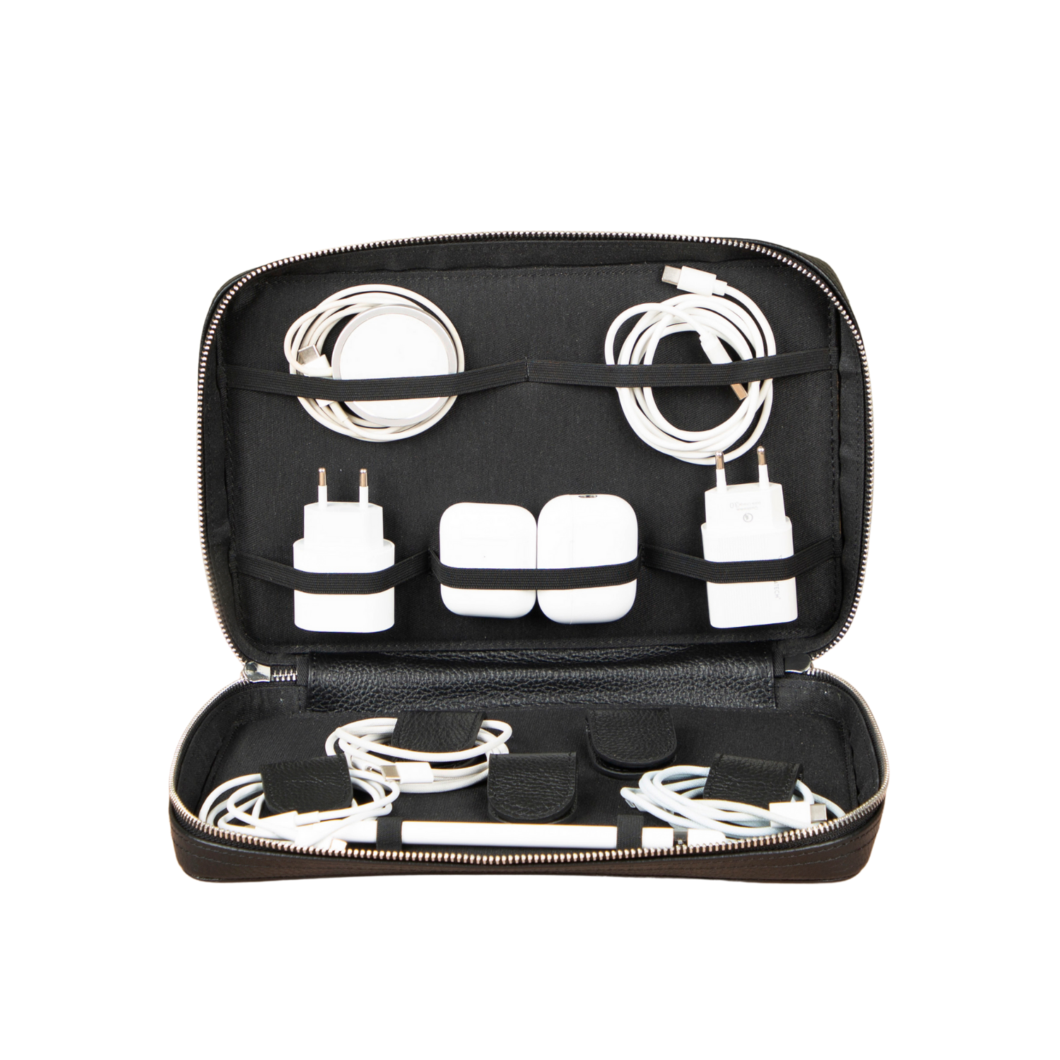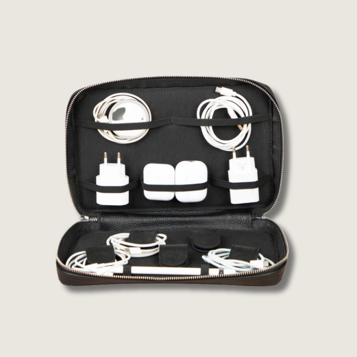- Crafted from premium leather, it offers a sleek and durable solution for keeping chargers, cables, and other accessories neatly secured.