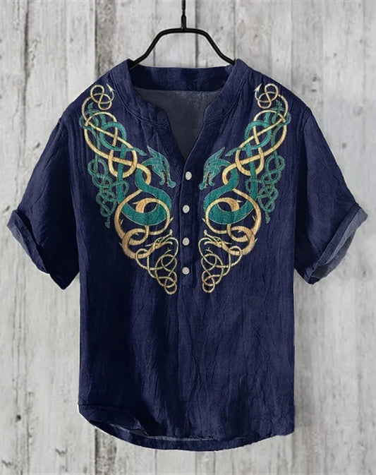 VILLAIN IN LINEN: Limited-Run Rock & Riot Print Shirt (V-Neck Heat Edition)
