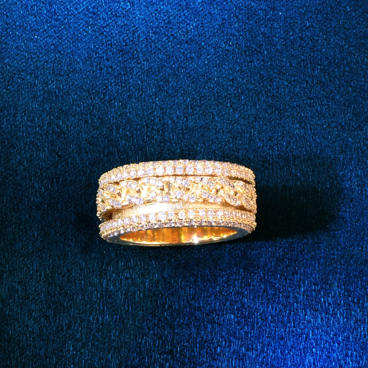The Revolver Cuban Ring – Gold Ice Torque for Heavy Hands