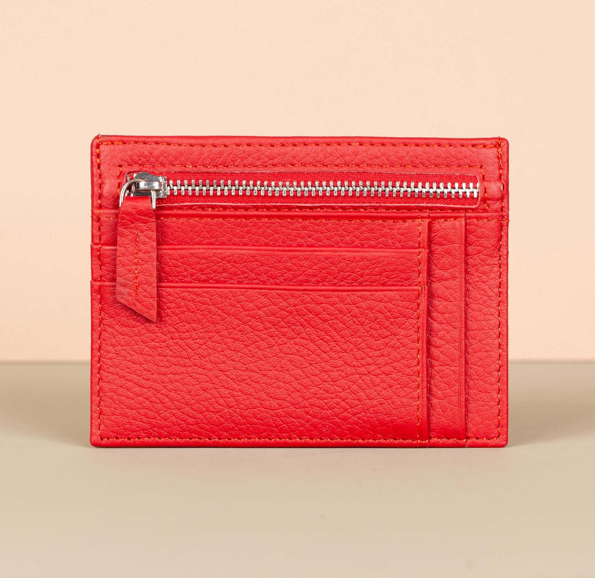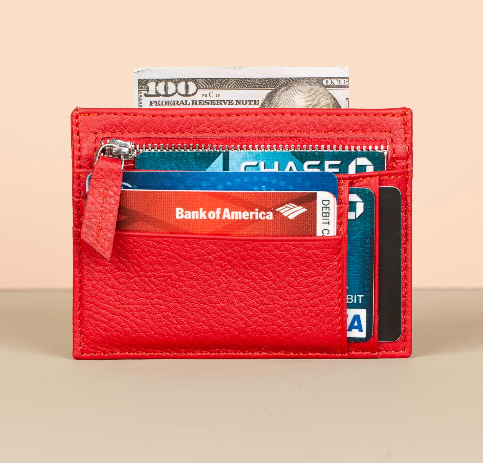 Vibrant Leather Card Holder with Zipper Pocket - Red - Concord