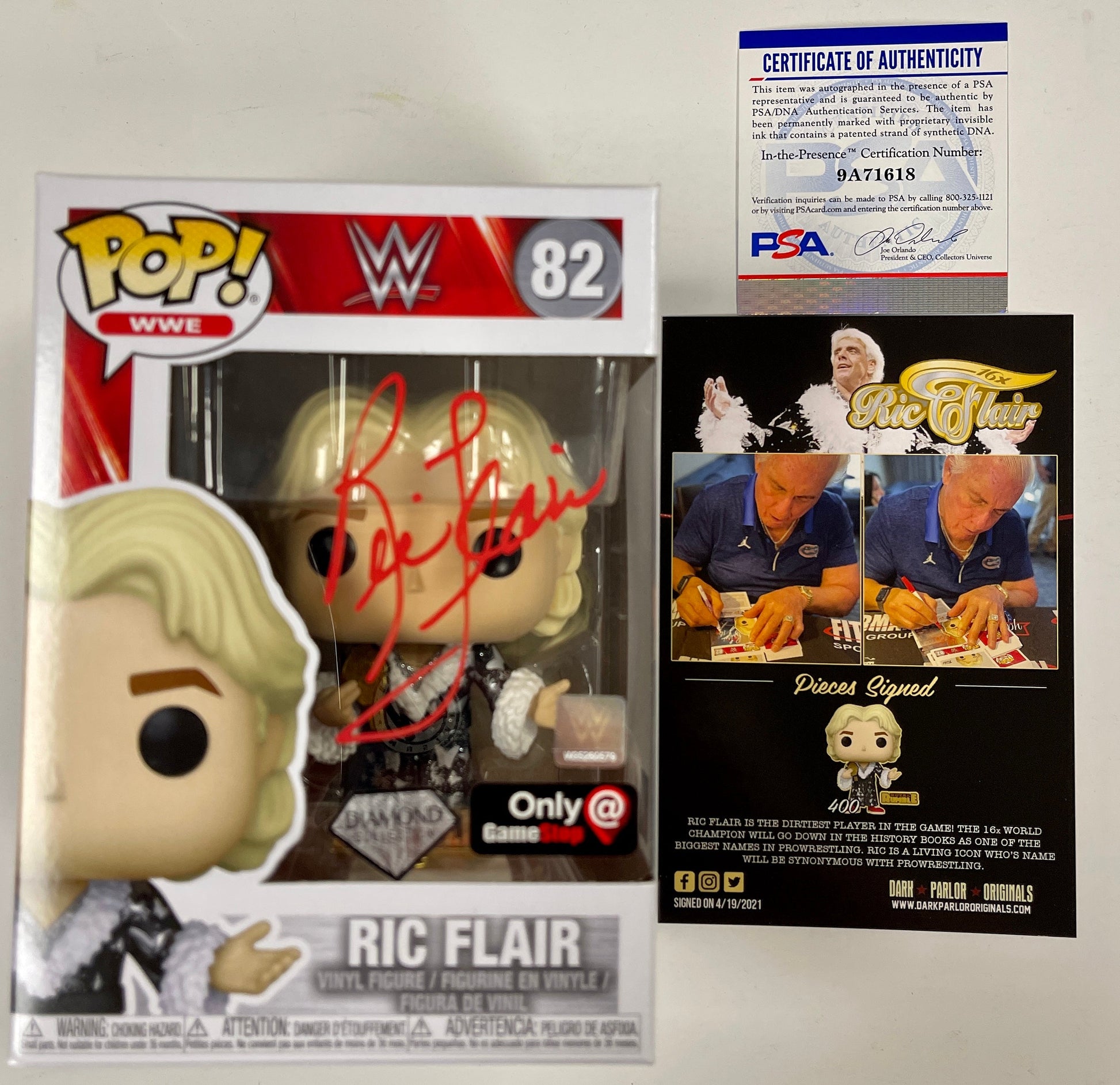 Ric Flair Signed WWE Wrestling 16X Champion Vaulted Diamond #82 Funko Pop! With PSA/DNA COA