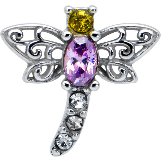 Purple Yellow Clear Gem Dragonfly Barbell Tongue Ring