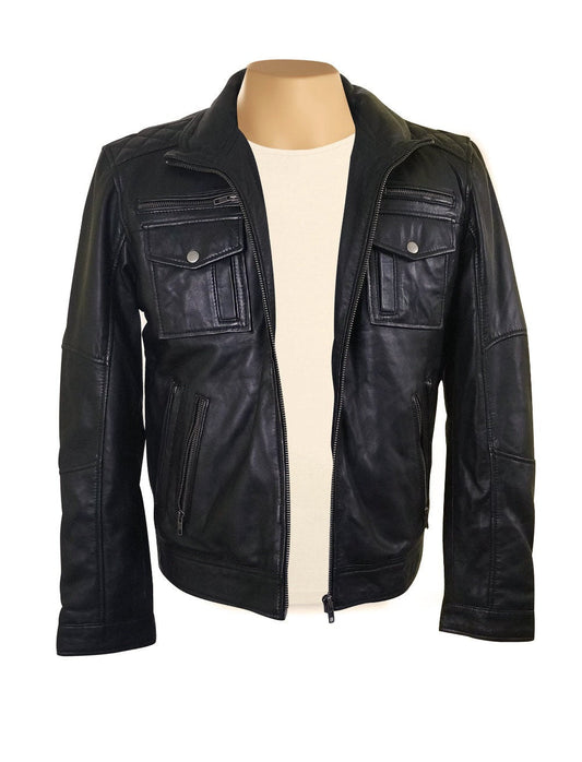 Handmade Benson Zip Up Leather Jacket With Flap Pockets