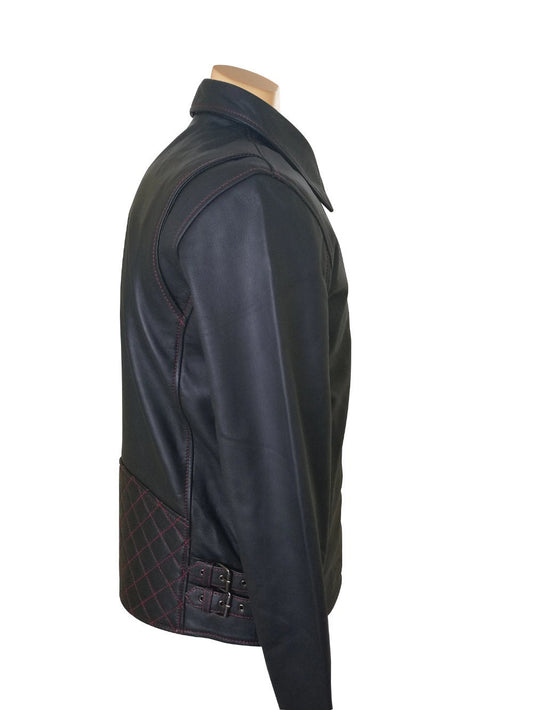Handmade Bonnie's Black Leather Jacket With Red Stitching