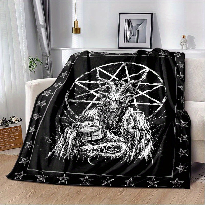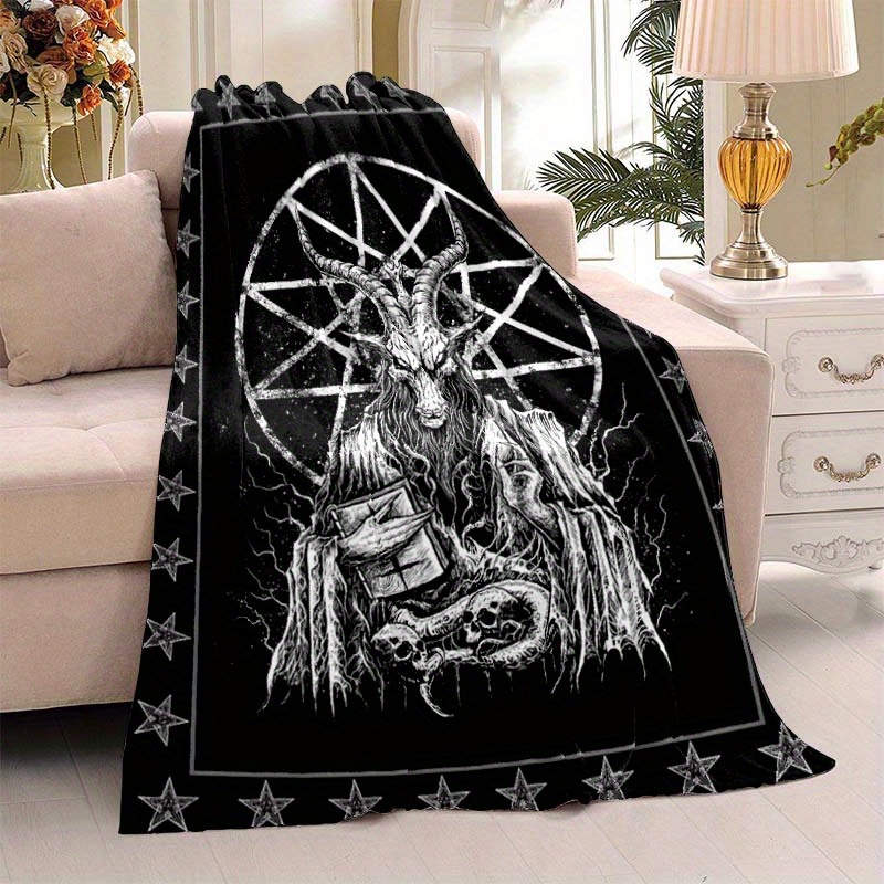 1pc Demonic Goat Baphomet Blanket 3D Printing Flannel Throw Blanket Bedroom Living Room Sofa Camping Travel Comfortable And Soft Blanket