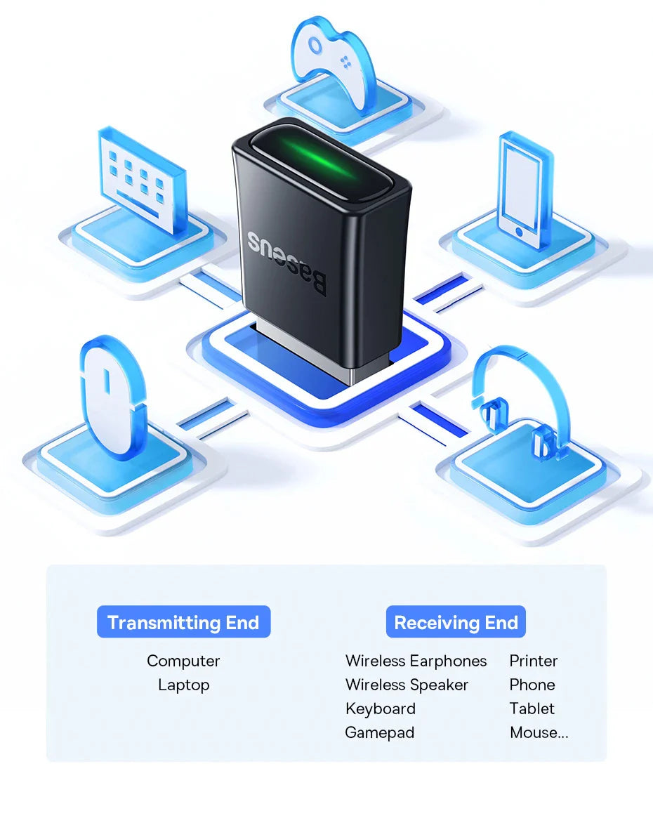 Baseus USB Bluetooth Adapter Bluetooth 5.3 Dongle Adaptador for PC Laptop Wireless Speaker Audio Receiver USB Transmitter
