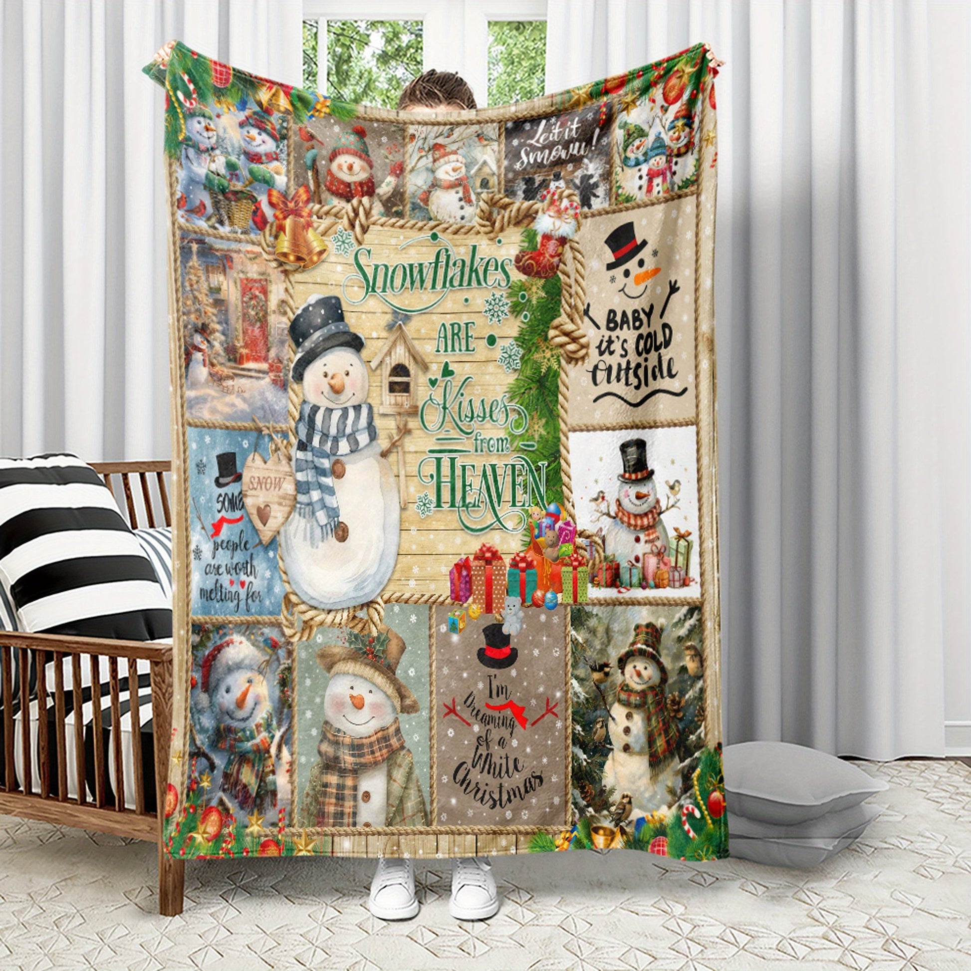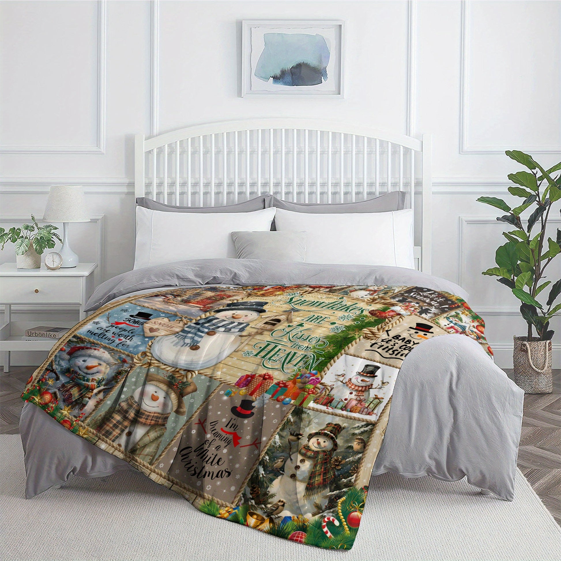 [Hot Selling] Cozy Snowman Christmas Blanket - Soft, Durable Polyester with 3D Printed Design - Perfect for Bed, Sofa, Camping & Travel - Available in Multiple Sizes
