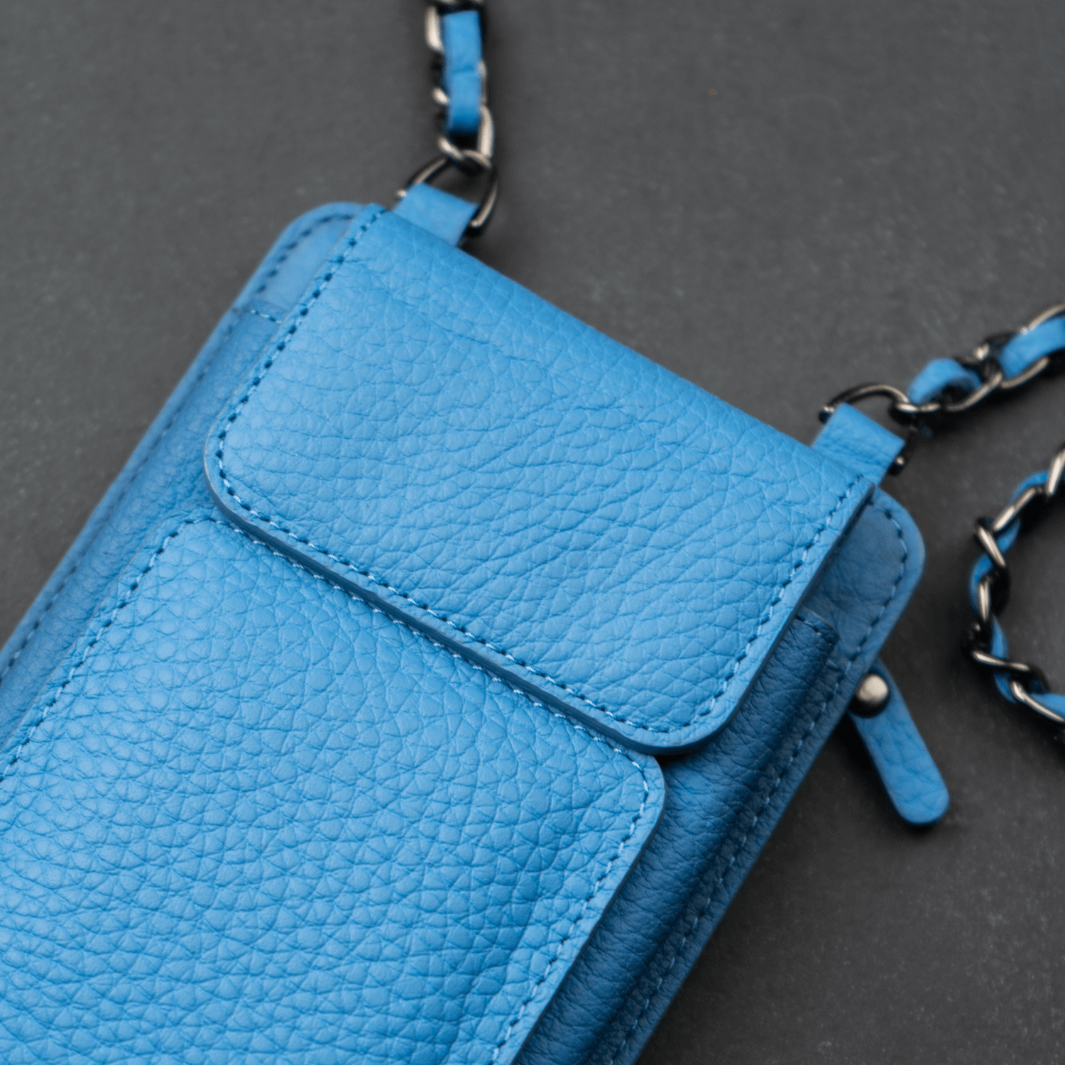 Leather Blue Crossbody Bag Phone Wallet - Columbus